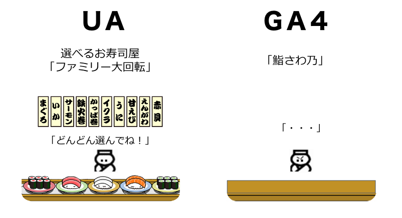 GA4を、使いなれたUA風にしてみよう 2023/07/01、いよいよUAが使えなくなり、否応なしにGA4を使わなければならなくなりました。いわば、いつもの「回転寿司屋」が、ある日突然「回らない寿司屋」に変わっていた位の […]