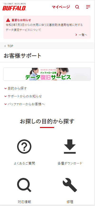 前述のメーカー直販のショップさんと同じ時期に利用したBUFFALO。