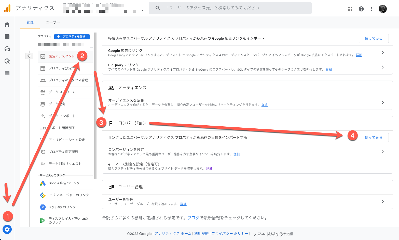 Google公式マニュアルによると、現在のGoogleアナリティクスは、2023年7月からデータ取得が停止し、2024年1月には閲覧ができなくなるとのこと(2022/05/20時点)。つまり、ウェブ戦略に欠かせない「昨年対比データ」を同指標で確保したい場合は、遅くとも今月、2022年の6月末にはGA4への設定移管を完了しておく必要があります。ただネット上ではこの告知に釈然とせず、旧GAの延命を希望する声も大きくなってきているため、Google社の今後の方針変更も期待したいところです。引き続き定点観測して変更があれば報告していきたいと思います。