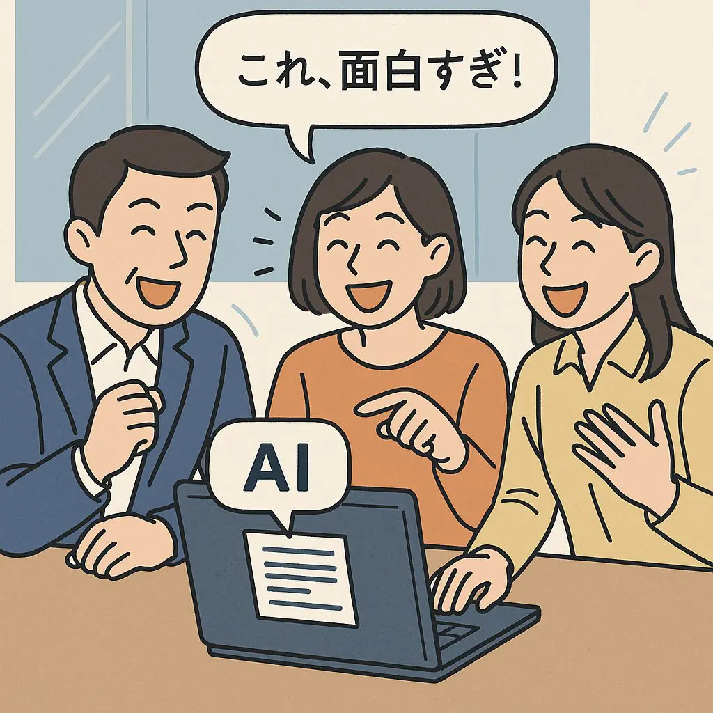 最初にAIを使った人の反応は、「すごい!」「こんなにできるの?」「ちょっと笑える」など、驚きや笑いが生まれがちです。この“ポジティブなリアクション”を共有することで、AIは社内に自然に広がっていきます。