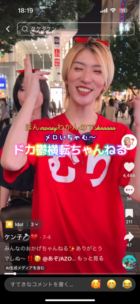 主にケン子さんはTIkTokで活動されており、フォロワーは2025年7月時点で9万人、動画を上げれば数万回が再生される人気インフルエンサーです。