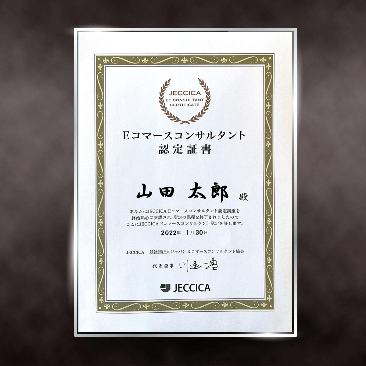 難関資格だからこその証し。ハイレベルな養成講座は、各項目のテストも非常に厳しく、理事の判定合格が必要です。また最終テストプレゼンテーションでは実際のEC店長、講師、理事が審査します。こうした厳しい合否判定を経て、はじめて認定証が発行されます。