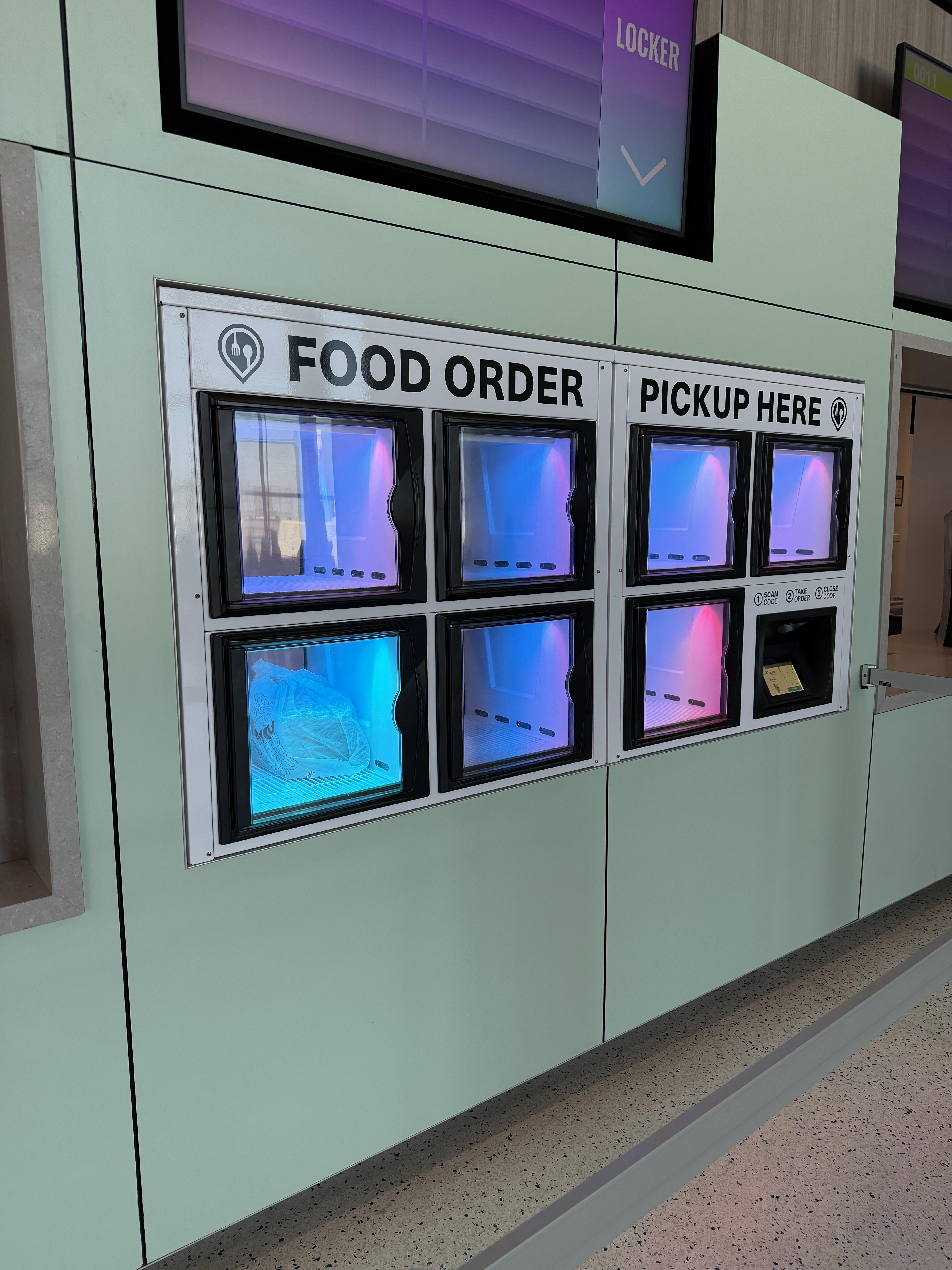 またダラス空港では、オンラインでフードをオーダーしてゲートまで届けてくれるサービスや、キオスクでオーダーしてフードをピックアップボックスから受け取るシステムもあり、空港がまさしく日常生活のように機能しています。この手の最先端テクノロジーの利用は、シリコンバレーが進んでいると思っていましたが、空港に関して見ると、どうもそうではないようです。